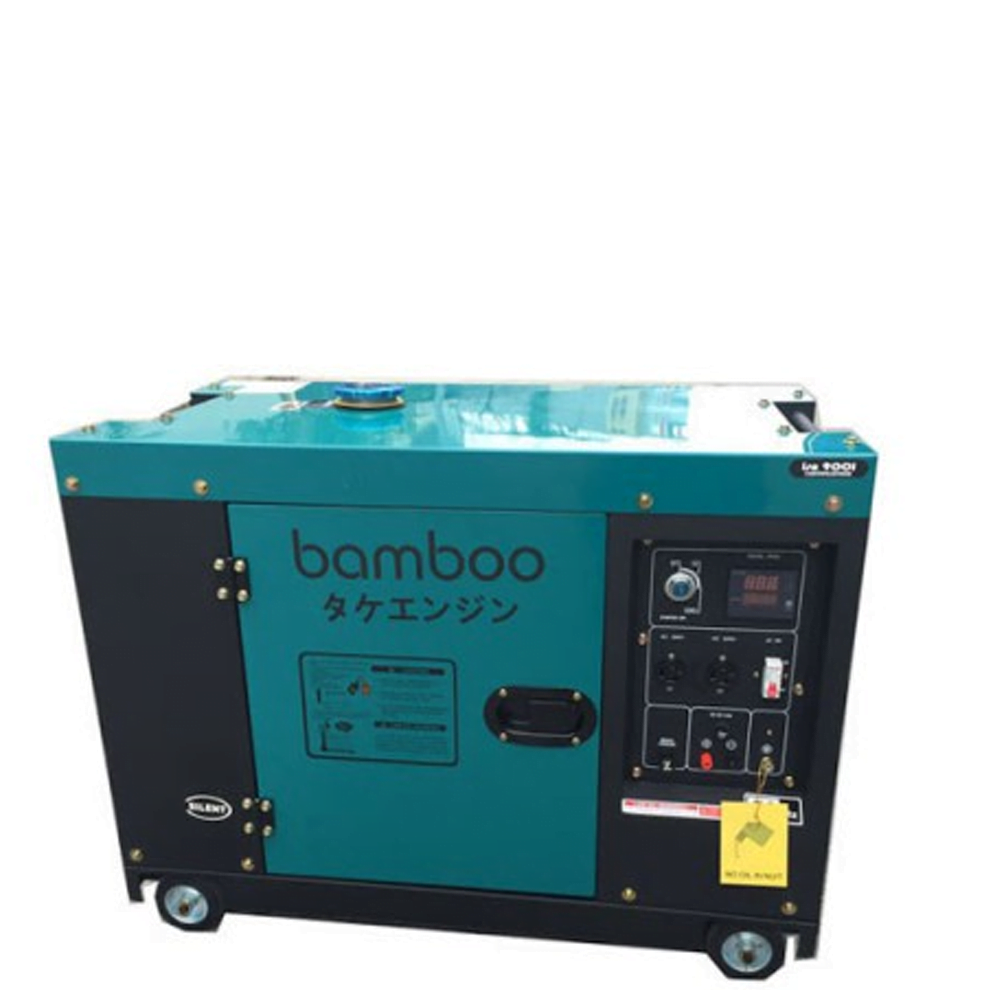 Máy phát điện là thiết bị chuyên dùng để cung cấp điện an toàn và hiệu quả nhất, với ba chức năng chính: Phát điện, chỉnh lưu, hiệu chỉnh điện áp. Công cụ có khả năng biến đổi cơ năng thành điện năng thông thường sử dụng nguyên lý cảm ứng điện từ. Máy phát điện Bamboo BmB 8800EAT là dong máy phát điện bằng đề nổ với nguyên liệu sử dụng là dầu diezen vì vậy máy được thừa hưởng các ưu điểm của loại máy chạy dầu như độ bền cao, tiêu hao ít nhiên liệu, máy hoạt động ổn định rất ít khi phải bảo dưỡng.